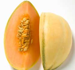 甜瓜又稱甘瓜或香瓜。它是夏令消暑瓜果,其營(yíng)養(yǎng)價(jià)值可與西瓜媲美。據(jù)測(cè)定,甜瓜除了水分和蛋白質(zhì)的含量低于西瓜外,其他營(yíng)養(yǎng)成分均不少于西瓜,而芳香物質(zhì)、礦物質(zhì)、糖分和維生素C的含量則明顯高于西瓜。祖國(guó)醫(yī)學(xué)確認(rèn)甜瓜具有“消暑熱,解煩渴,利小便”的顯著功效。因甜瓜性寒,有吐血、咳血、十二指腸及胃潰瘍、慢性腸炎、脾胃虛寒、寒積腹脹或腹痛腹瀉、小便頻多、心臟病等人慎用或忌用。正常健康的人也不宜大量常吃,因甜瓜水分很多,吃太多在胃里會(huì)沖淡胃液,傷胃引起消化不良或腹痛腹瀉。