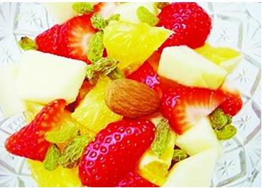 原料:草莓、葡萄干、蘋果、甜橙、酸奶、杏仁。