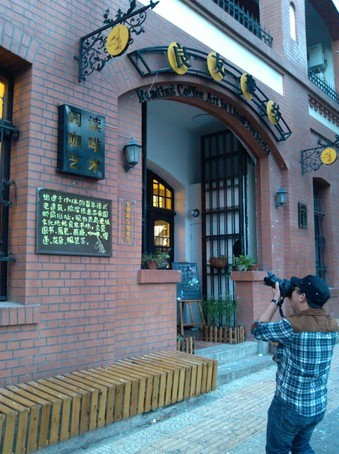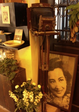 要轉身離開時,忽然發現進門處的一個角落里豎著一臺民國時期的照相機,腳架下面是一副很大的民國女子的照片,看起來很像周璇,相片前面擺著白色的菊花。如果不是趕火車,我真想在這里喝一杯咖啡,慢慢地品味這安寧的時光。
