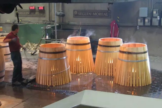 經(jīng)過烘烤的橡木條更容易彎曲成桶,此外,經(jīng)過烘烤后的橡木桶,有利于陳釀的酒液從中獲取更多的風(fēng)味。而經(jīng)過不同程度烘烤的橡木桶,會給葡萄酒帶來不同的風(fēng)味:輕度烘烤的橡木桶,桶壁的顏色改變很小,在其中陳釀的葡萄酒香氣不會受很大影響,仍是果香充沛,但能從橡木中萃取較多的單寧;中度烘烤的橡木桶,桶壁顏色變得更棕,單寧相比于前者會比較柔和,果香中還能透露出香草或咖啡的醇香;重度烘烤的橡木桶,桶壁顏色非常深,甚至已經(jīng)出現(xiàn)烤焦層,這樣酒液獲取的單寧很少,更多的是濃郁的煙熏、咖啡、豆蔻等辛香味,整體風(fēng)格是圓潤順滑的。
