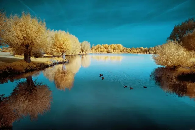 見山尋測光的目的就是利用陽光的低照度,使場景富有層次和立體感,以避免畫面平平,缺乏沖擊力。見水拍倒影也是攝影人常用的手法之一,特別是在風和日麗、無風無雨的情況下,水面就像一面鏡子,利用當時的場景就可以拍出更具有詩情畫意的倒影作品了。