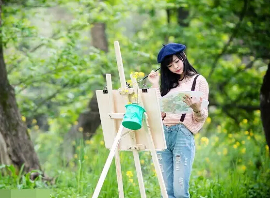 3、高級——畫板,帶著畫板,整個構圖就會更豐富,表情一定要夠生動,要展現一個在油菜花地里寫生的文藝狗,但是用畫板的話一定要注意構圖,注意畫板擺放的角度和位置。