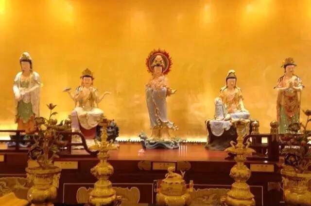 第四層為圓通寶殿。觀音菩薩的事跡在此得以呈現, 整層按《觀音60靈簽》來供奉60尊法相莊嚴、慈悲之觀音菩薩,我們用傳統木雕及彩繪貼金工藝來制作,菩薩神態寧靜祥和,呈現出一片清凈無比,至真至善至美的觀音菩薩的凈土。