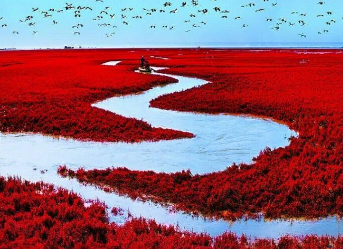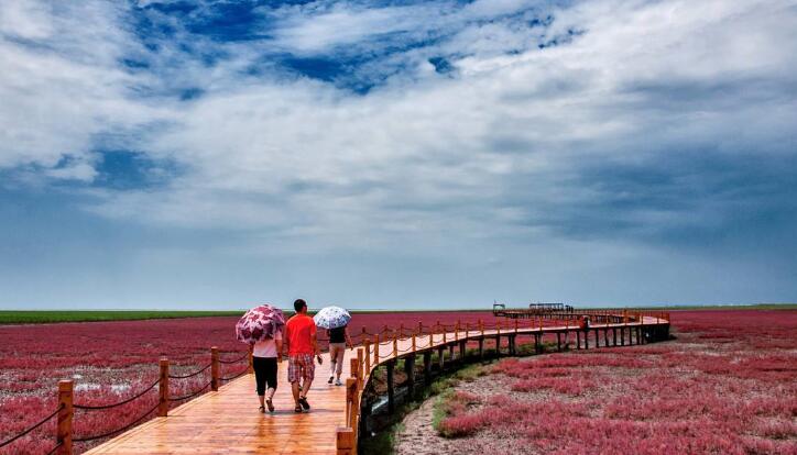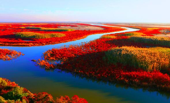 游覽后午餐,乘車前往我國北方最大的濱海濕地城市—盤錦市,抵達盤錦后前往游覽【盤錦紅海灘廊道】(游覽約3小時),紅海灘地處遼河三角洲濕地,位于盤錦市西南海濱,是由大片紅色的堿蓬草形成的著名濕地,紅海灘國家風景廊道是紅海灘面積最大的景區,在這里你可以漫步于木棧道、看紅如熾焰的堿蓬草在海岸線上無限延伸,而紅海灘遠處的油井在夕陽下更是一副迷人的畫卷,秋天來此還能看到金黃色的稻田與紅海灘相呼應,以及成群的候鳥展翅于灘涂的深處,游覽后晚餐,晚餐品嘗盤錦稻香河蟹宴,晚餐后入住酒店休息。
