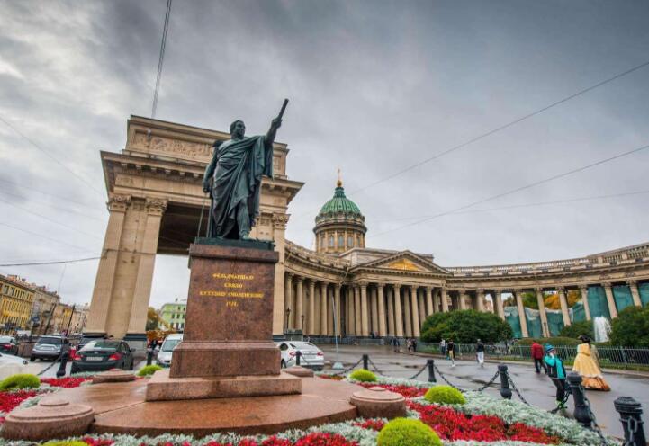 【喀山大教堂】(外觀約10分鐘)俄羅斯第一座由俄羅斯建筑師修建的歐洲風格的教堂,也是圣彼得堡最靈驗的東正教教堂。半圓型的柱廊由94根圓柱組成,面向大街,環抱廣場。柱廊前面矗立著俄軍統帥庫圖佐夫紀念碑和俄國陸軍元帥紀念碑。教堂里有庫圖佐夫墓和1812年打敗拿破侖的勝利品。喀山圣母像曾經多次顯靈。第一次顯靈于伊凡雷帝時期。