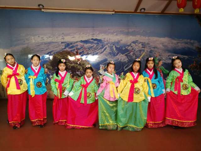 朝鮮族是一個能歌善舞的民族,象帽舞和腰鼓舞都是非常具有朝鮮風(fēng)韻的舞蹈。男孩學(xué)習(xí)象帽舞,女孩學(xué)習(xí)腰鼓舞,最后秀一場我們自導(dǎo)自演的匯報演出。