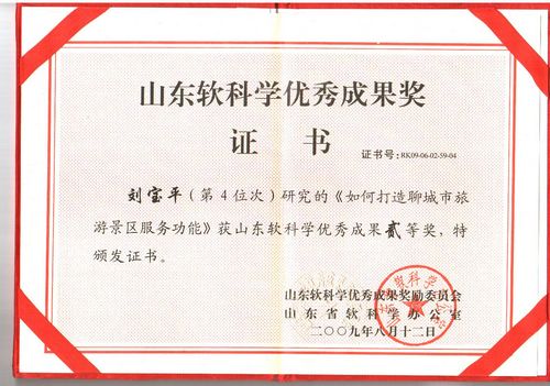 山東軟科學優秀成果獎證書