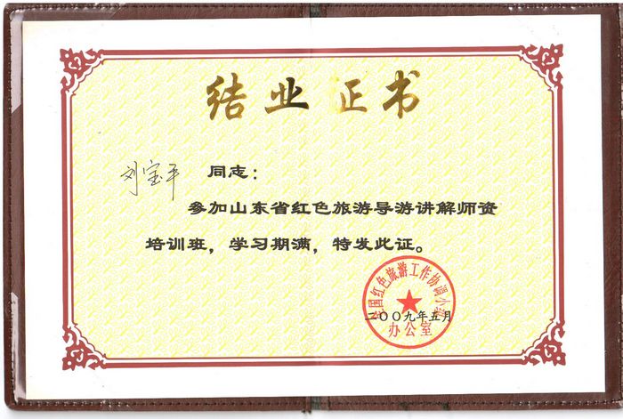 山東省紅色旅游講解師證