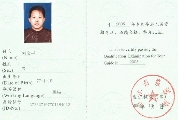 山東導游資格考試考官證