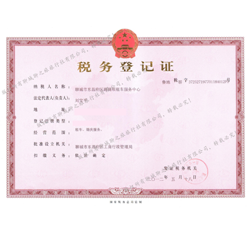 路路順租車服務中心稅務登記證