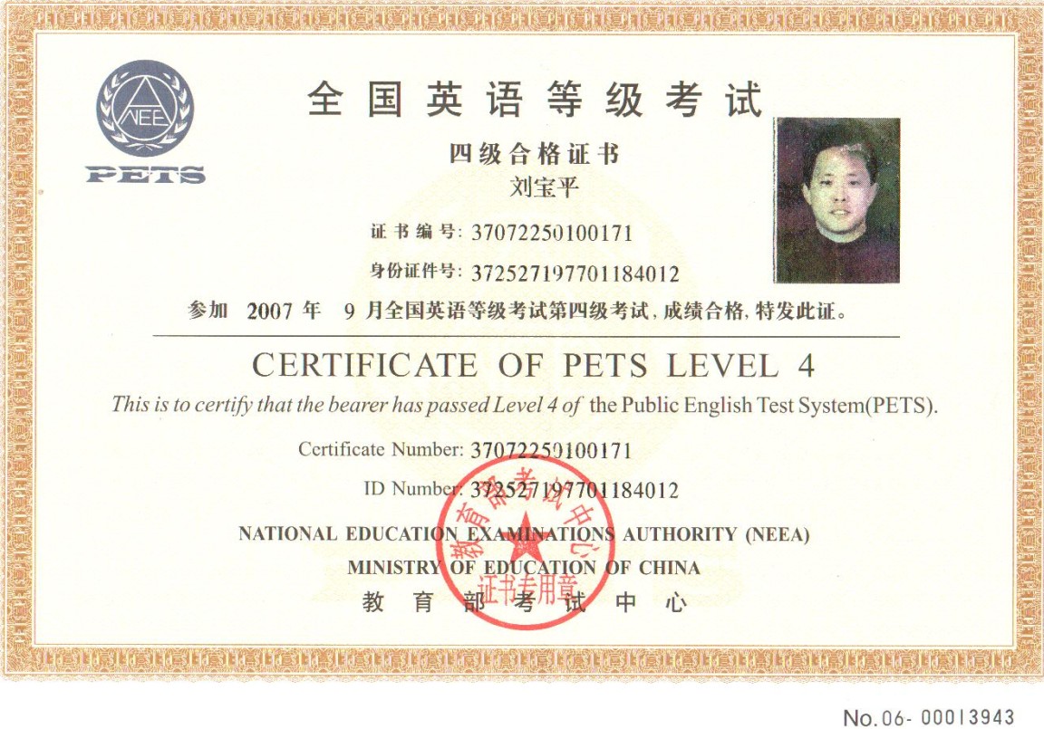 公共英語四級證書