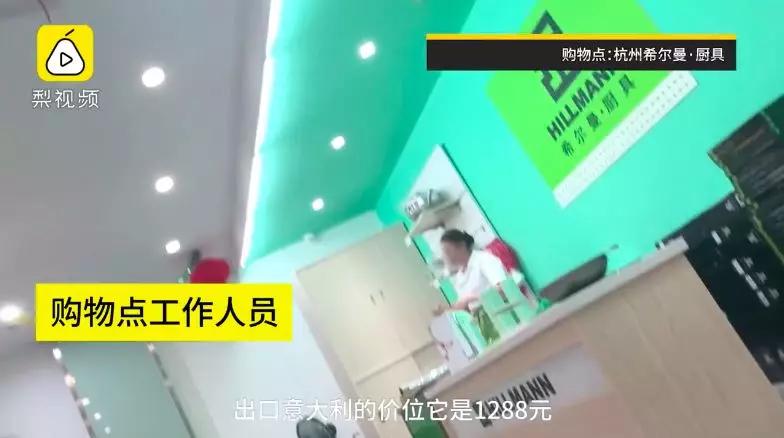 同樣的套路,發生在杭州希爾曼廚具購物店中,導游以五折左右價格吸引游客購買。