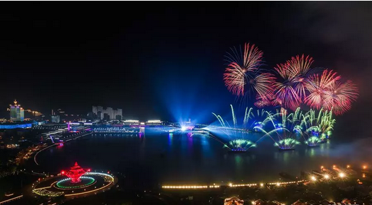 6月9日至10日,上海合作組織青島峰會在山東青島召開。這是9日晚在青島舉行的《有朋自遠方來》燈光焰火藝術表演。