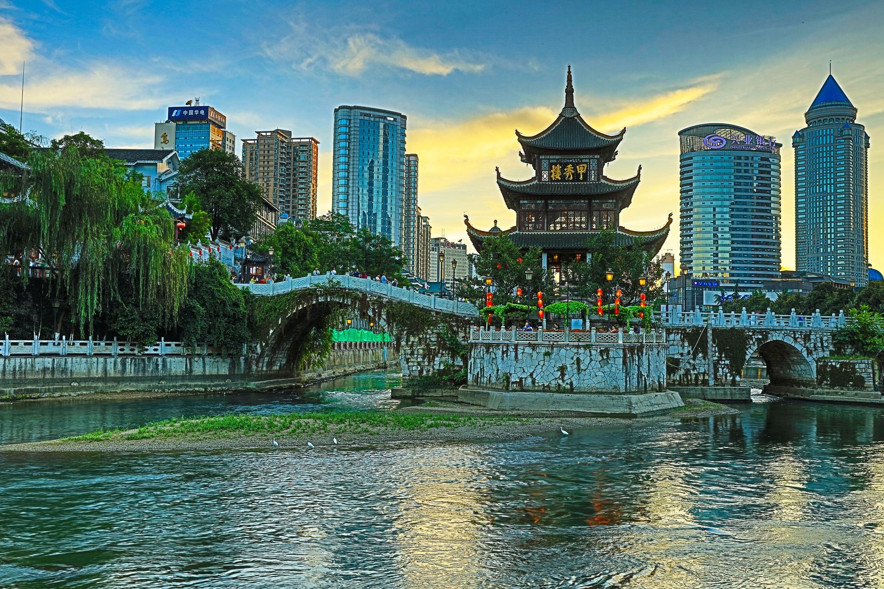 獨占鰲磯撐天宇,南明河上浮玉橋。