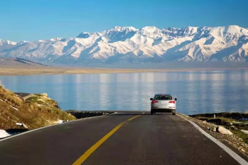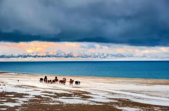 途中午餐,下午到達賽里木湖,這個季節的賽里木湖岸邊還沒有一望無際的野花,但是有剛剛消融的冰雪,運氣好的話還能拍到藍冰(和貝加爾湖的藍冰一樣漂亮)。