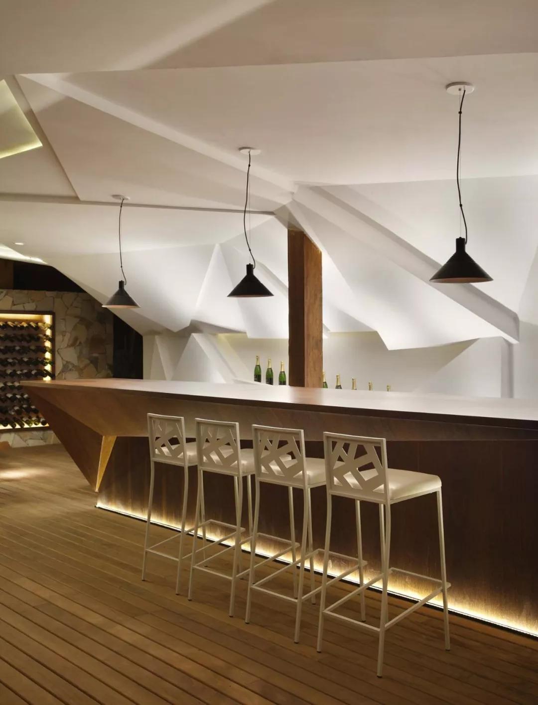 后現代酒吧設計風格強調空間應具有歷史的延續性,但又不拘泥于傳統的邏輯思維方式,探索創新造型手法,講究人情味,常在室內設置夸張、變形的柱式和斷裂的拱券,或把古典構件的抽象形式以新的手法組合在一起,采用非傳統的混合、疊加、錯位、裂變等手法和象征、隱喻等手段,以期創造一種溶感性與理性、集傳統與現代、揉大眾與行家于一體的酒吧環境。