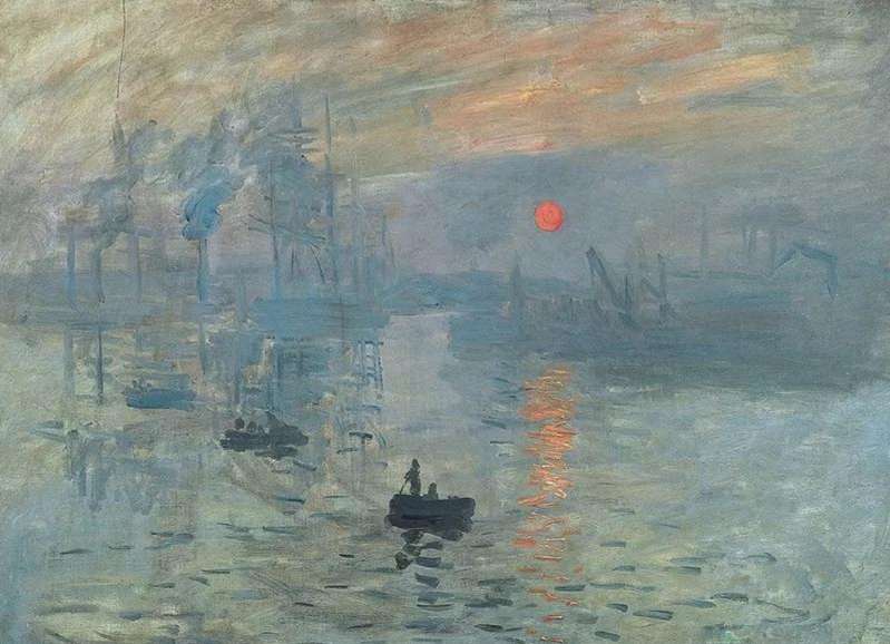 ▲ 印象派的景點(diǎn)畫作之一,顏色淡雅,畫面簡(jiǎn)潔靈動(dòng),晨霧下的日出給人恬靜之感。