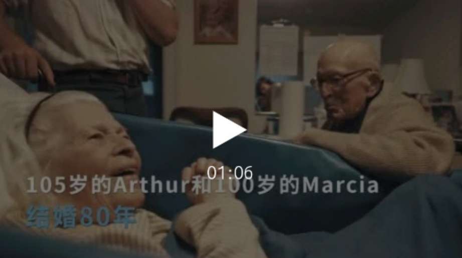 105歲的爺爺Arthur坐在病床前,握著100歲的奶奶Marcia的手,輕聲地說(shuō)著:“我愛你”。