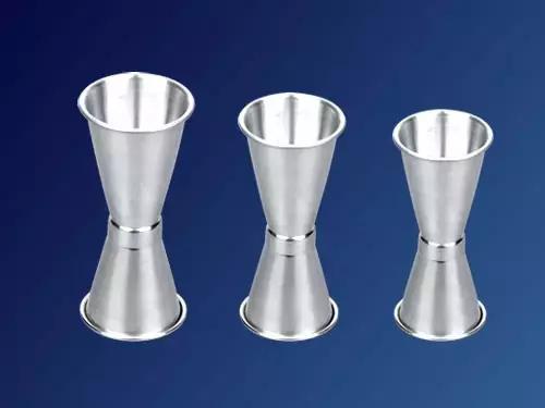 一個量酒杯有兩個頭,一般規格的量酒杯兩頭的容量分別為11/2盎司和1盎司。