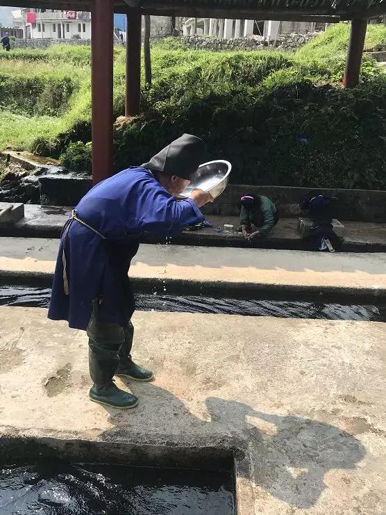 苗家的奶奶,用盆子舀起泉水,盡情的享用起來,小編也按捺不住,躍躍欲試,嘗了一下,又涼又甜,沁人心脾。