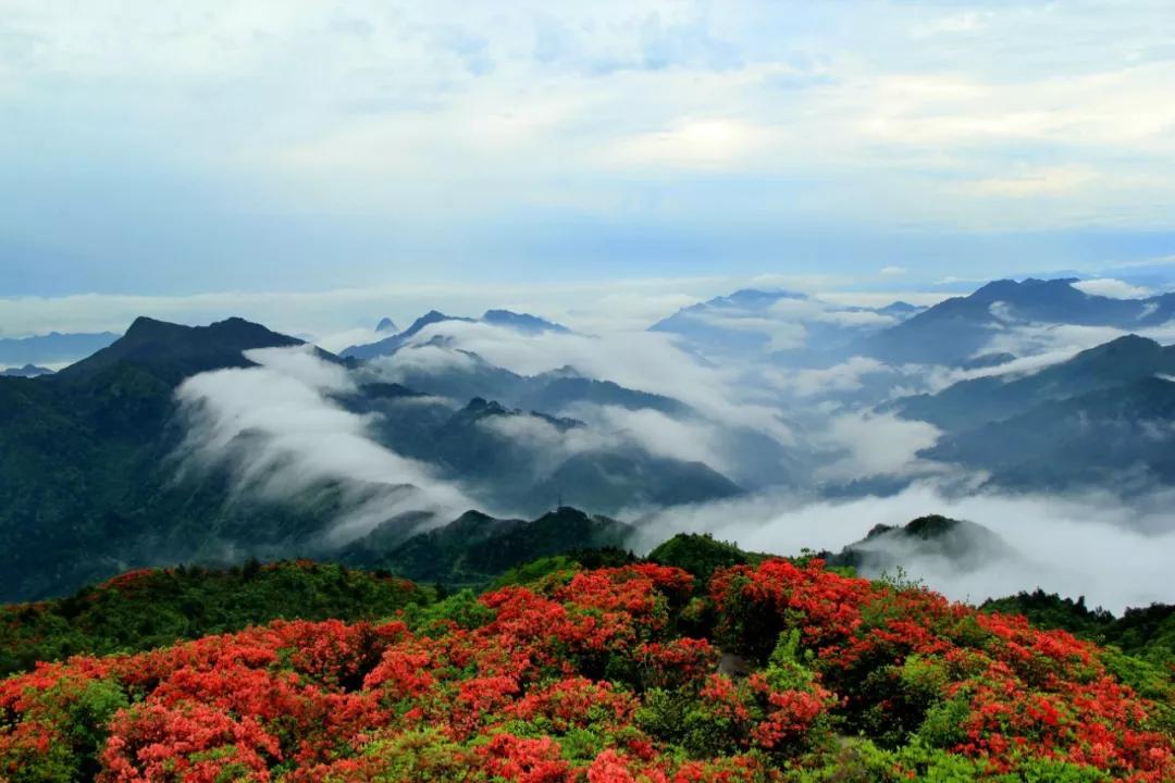 這里的杜鵑為高山矮杜鵑,分為紅、白、紫三色,每年四、五月間開放,花期一周左右,陽光照耀下,能映紅半邊天,身處其中,無不驚嘆它的美好。