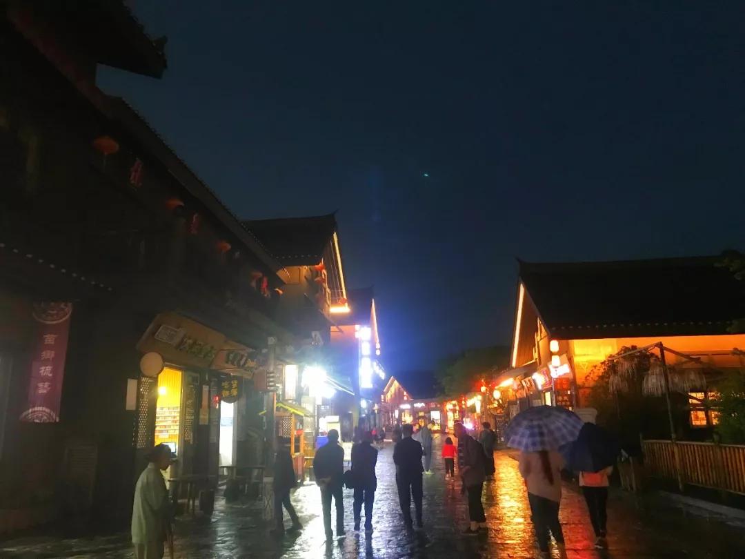 街道上的店鋪打開了燈光,遠遠望去,人們的熱情絲毫沒被雨水澆冷,大家或許和我一樣,貪戀小鎮的夜色吧。