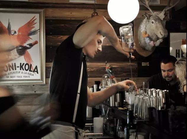 入口處有一個陡峭的樓梯和極低的天花板,小心不要碰到頭部喲。木質的裝修風格,有著厚重古樸的時代感。調酒師的技藝高超,有時他們一人同時管理著幾個單子,卻絲毫沒有出差錯。酒的名字特別新奇,看到就讓人好奇它的味道,忍不住想要嘗試一下。