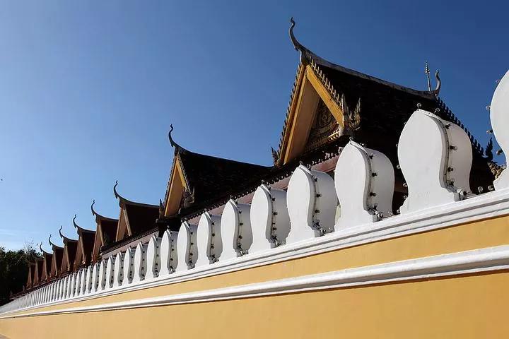 金邊皇宮是諾羅敦國王于1866-1870年建造的,充滿高棉傳統建筑風格和宗教色彩。皇宮由一組金色屋頂、黃墻環繞的建筑組成,造型精美,金碧輝煌。