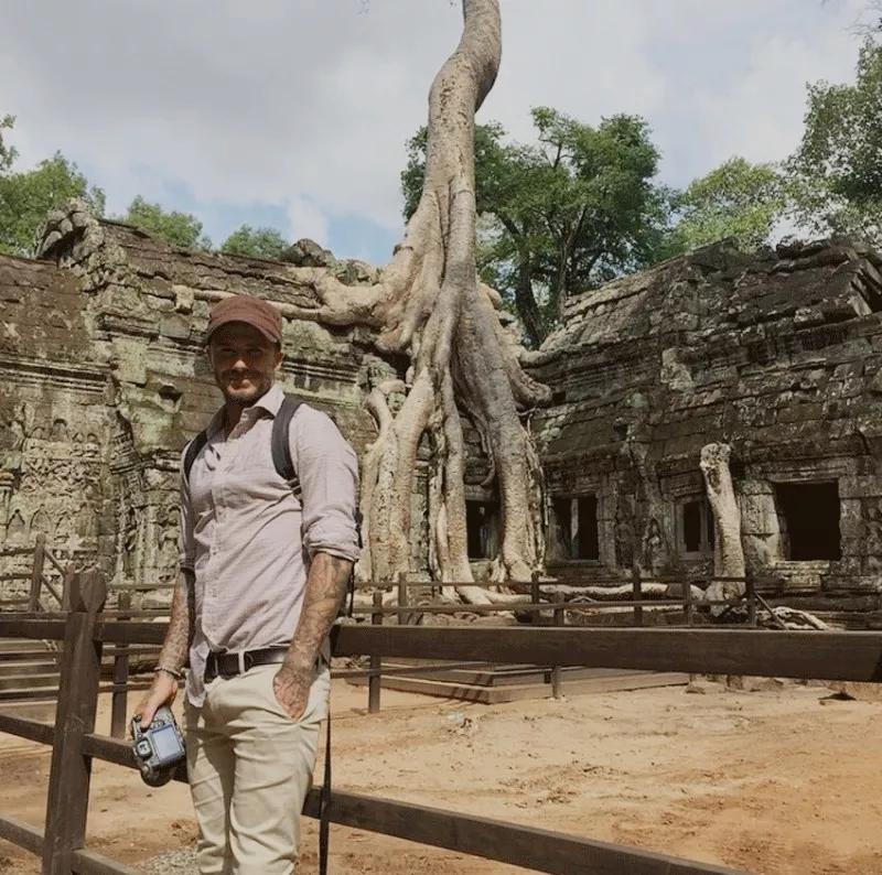 2015年,貝克漢姆參觀吳哥窟。貝克漢姆在“朋友圈”里寫道:“我正在參觀柬埔寨的吳哥窟,這是世界最美麗的地方。”