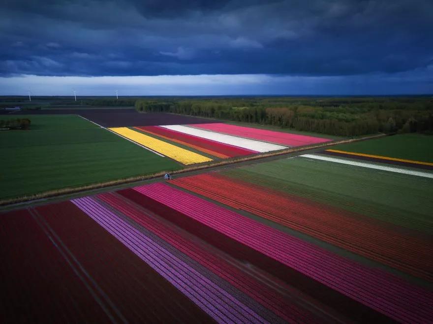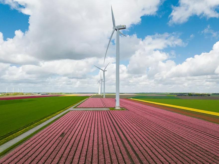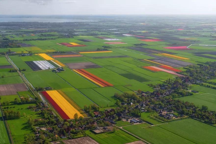 這里不僅風景優(yōu)美,還擁有3500公頃荷蘭最大的球根花田。一望無際的郁金香花田和高高矗立的風力發(fā)電機組成了一幅綿延100公里的美麗畫卷。