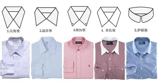 西裝內的襯衫+領帶(領結、圍巾)也有講究,常見的襯衫領有下面幾種: