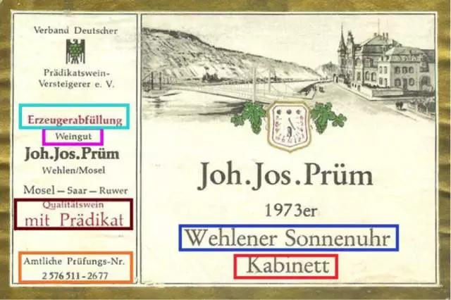 Qualitatswein相當于英文的quality wine,即“有質量的葡萄酒”,mit是英文with的意思,Pradikat在德語中是“頭銜”的意思,有頭有臉的葡萄酒,那自然是質量最好的葡萄酒的級別了。值得一提的是Qualitatswein mit Pradikat(Qmp)這個等級現在已經統稱“Pradikatswein”。有這一標志的葡萄酒必須按照當地法定葡萄品種釀制,且不允許加糖。