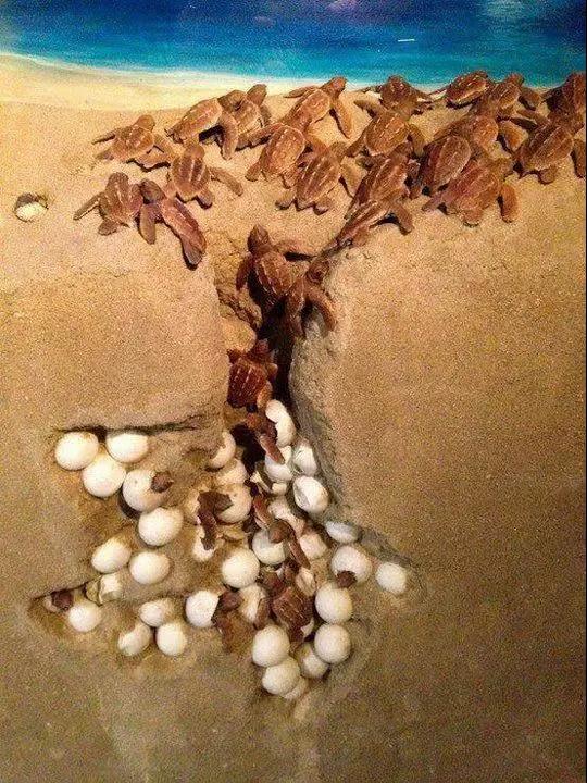 陽光燦爛的天氣,小海龜紛紛破殼而出,成群結隊的爬向大海。