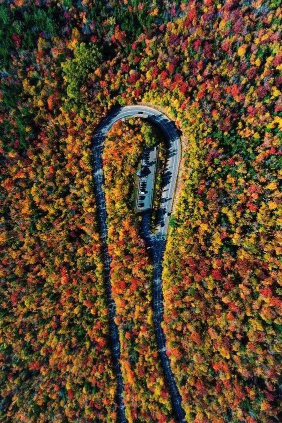 在種滿各種樹木的森林里,開辟出兩條公路,就像掛在脖子上的吊墜一樣。
