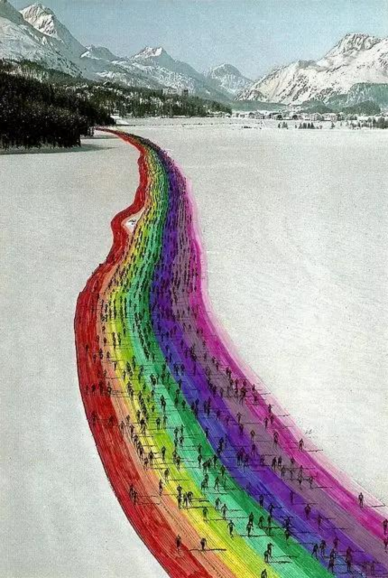 這條在雪后開辟的彩虹大道上,成千上萬的馬拉松參賽者在一邊跑步一邊欣賞風景。