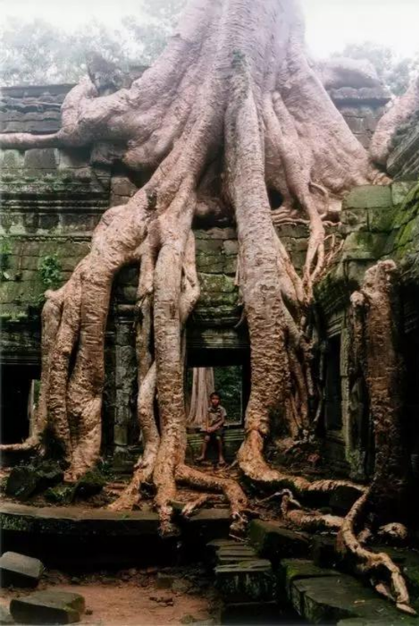 粗大古老的樹根,似乎要把房子壓塌了的感覺。這種成了精的古樹,還是不要輕易靠近啦!
