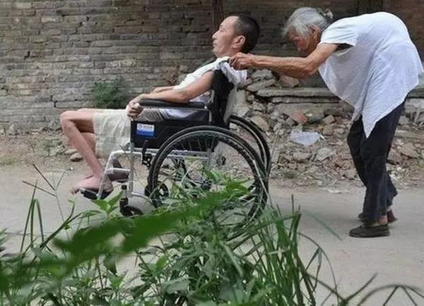 母親每天都會推兒子外出,為了兒子可以多看看外面的世界,即使她早已被歲月壓垮了身體,依舊日復一日,年復一年...