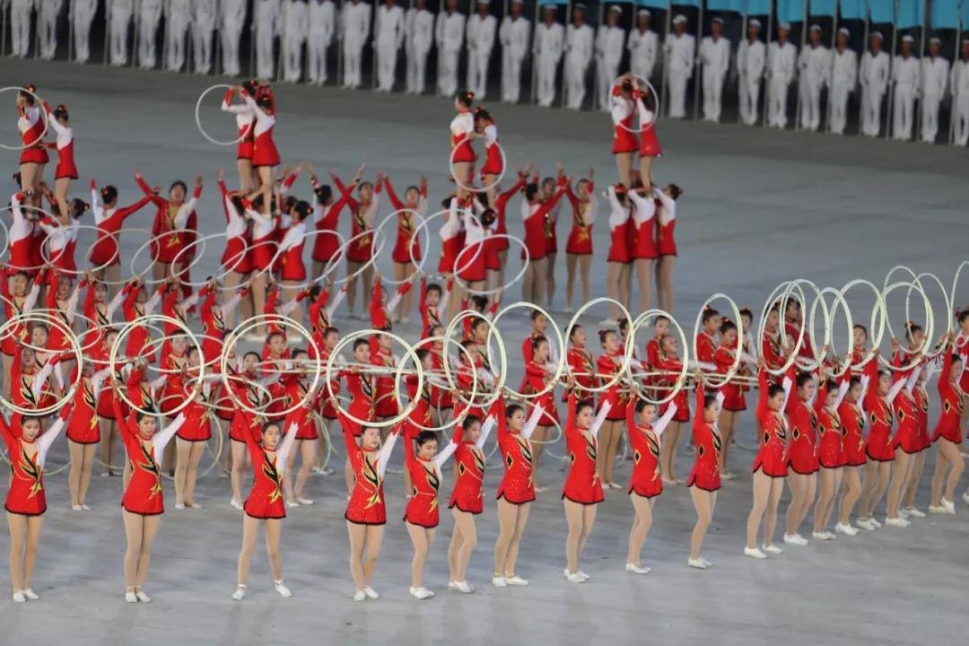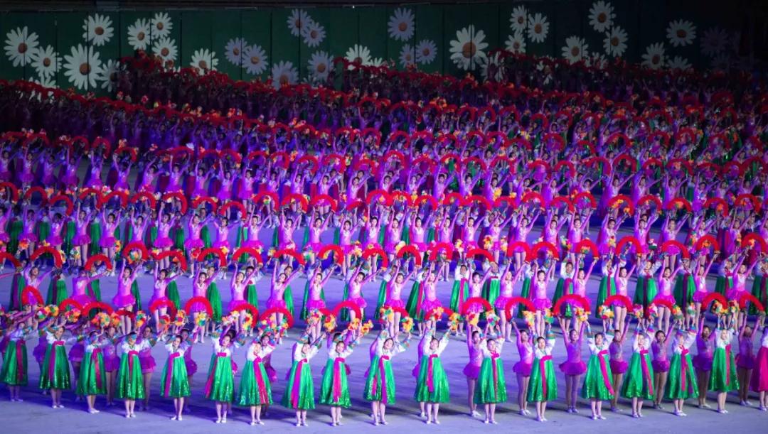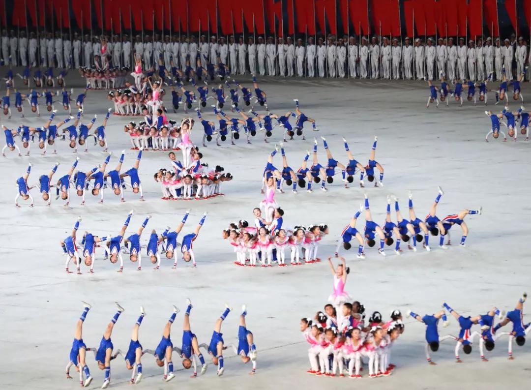 平壤大同江畔,綾羅島“五一”體育場(chǎng)是團(tuán)體操的主要舞臺(tái)。演出以朝鮮民族獨(dú)特的“歌舞之美”、富有活力的團(tuán)體操、嘆為觀止的雜技表演,展現(xiàn)出朝鮮革命與戰(zhàn)爭(zhēng)、政治和軍隊(duì)建設(shè)、民生與經(jīng)濟(jì)發(fā)展以及對(duì)外交往的宏偉畫卷。