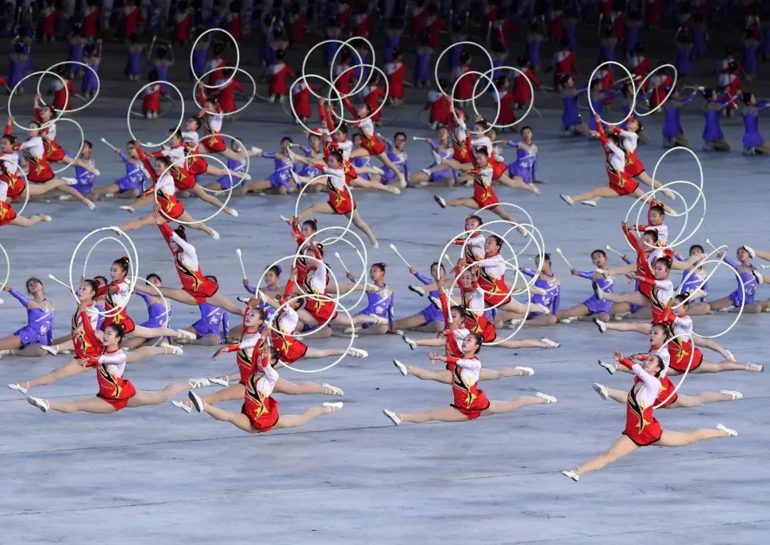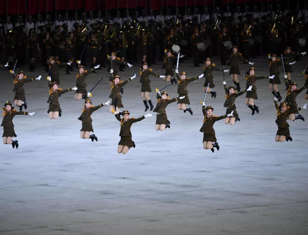 ▲2018年9月9日,演員在平壤綾羅島“五一”體育場(chǎng)表演“輝煌的祖國(guó)”。