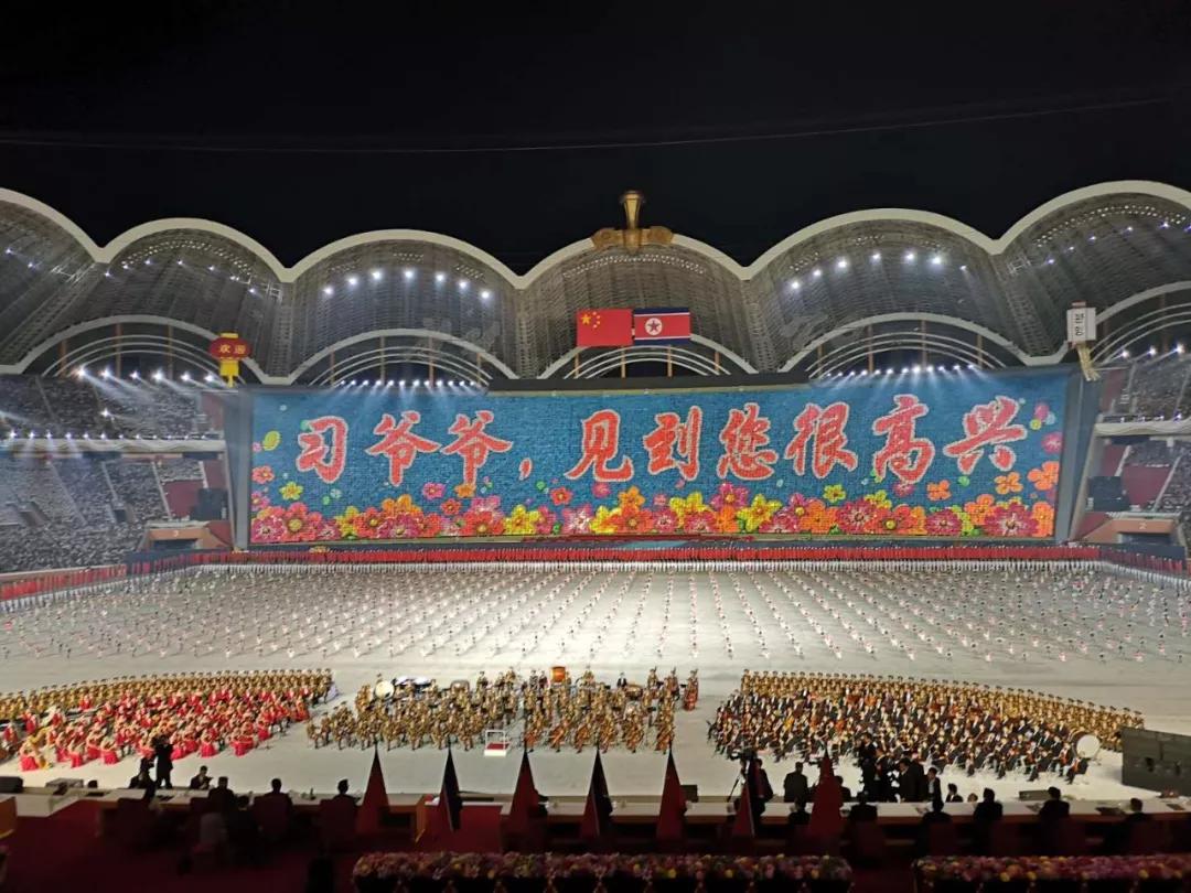 這臺(tái)演出為習(xí)近平此訪專門精心創(chuàng)作,數(shù)萬(wàn)名朝鮮演員參加表演,朝鮮三大樂(lè)團(tuán)首次同臺(tái)獻(xiàn)藝,整場(chǎng)演出氣勢(shì)恢宏、震撼感人。