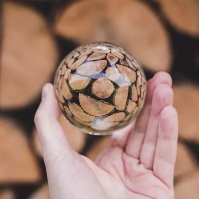 使用水晶球進行聚焦,不僅可以實現放大,還可以利用畸變來使紋理產生一定的變化感;再利用小/清晰虛像與大/模糊實景的對比,會讓作品顯得更有趣。