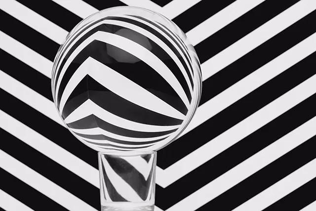 你也可以“定制”背景,用電腦設計一些平行/交錯/粗細變化的線條組,打印出來后作為背景,放入水晶球進行拍攝。