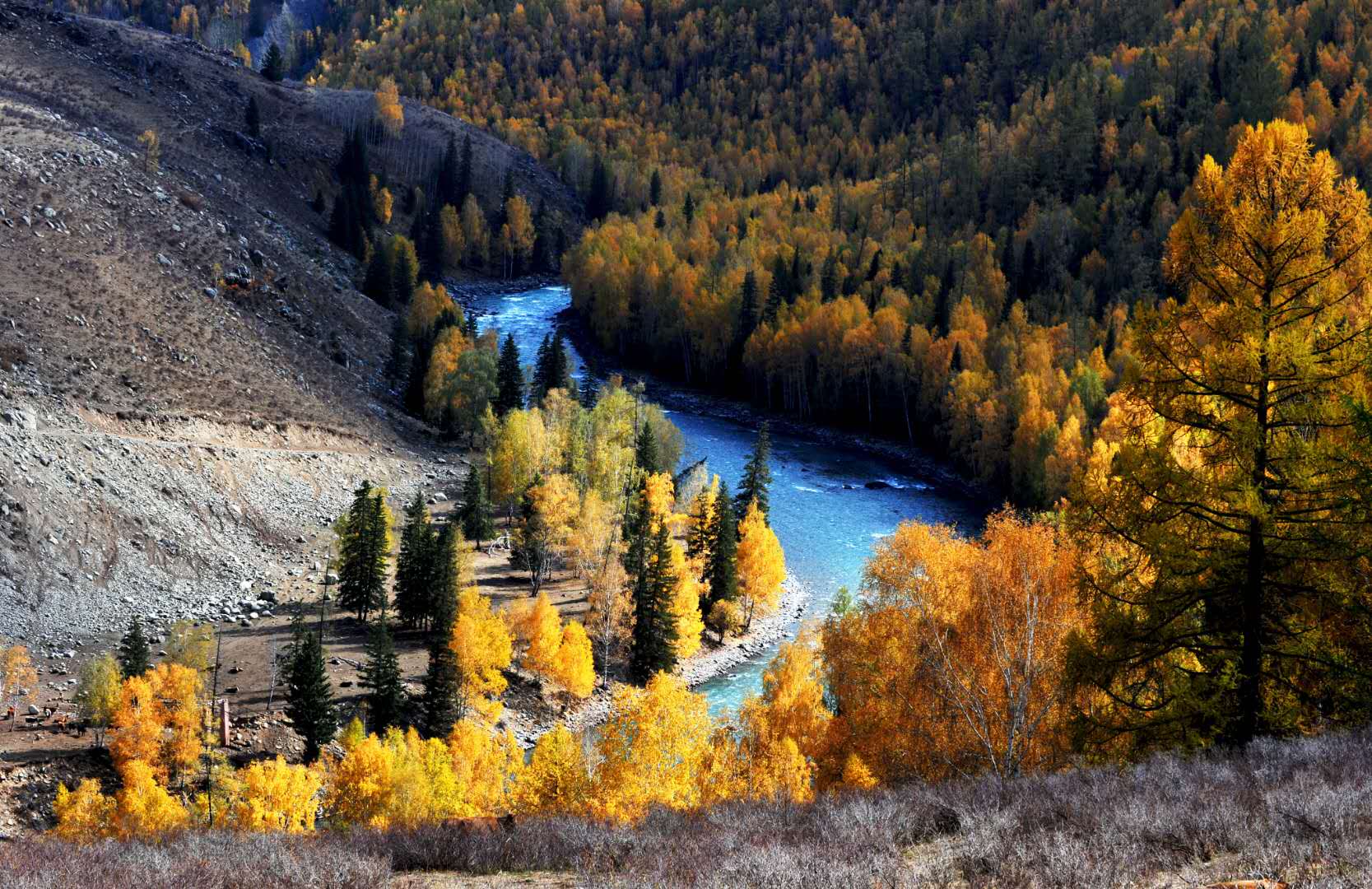 【禾木景區(qū)】(含區(qū)間車,游覽2.5--3小時)白樺林腳下的禾木河水在陽光下閃爍金光,與木屋、炊煙、擠牛奶的牧民,以及牧羊的孩童一起,營造著家園的溫馨,釋放著一種生命獨有的暖意。吹著風,看著雪山,享受星空和大地帶給您最好的旅行?;蝌T馬在圖瓦人村落中漫步,享受牧民的田園牧歌??δ撬箙^(qū)域最美的景色在禾木,層林浸染,絢麗多彩,是一處典型的原始自然生態(tài)風光。在禾木村周圍的小山坡上可俯視禾木村以及禾木河的全景,一棟棟的小木屋和成群結隊的牧群,與雪峰、森林、草地、藍天白云構成了獨特的自然與文化景觀。
