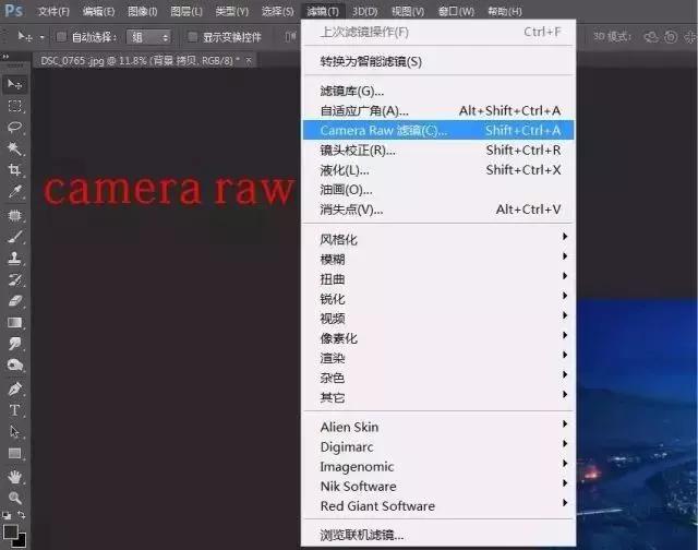 Photoshop CC 版本,就把原本只是在導(dǎo)入 raw 格式照片才會(huì)彈出來(lái)的 Camera Raw 插件變成了 jpg,tif 也可以適用的濾鏡。