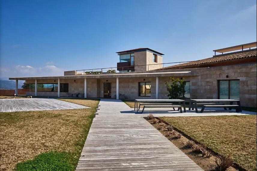 酒莊卻完全是現代的,在一群古老的房子里格外顯眼。