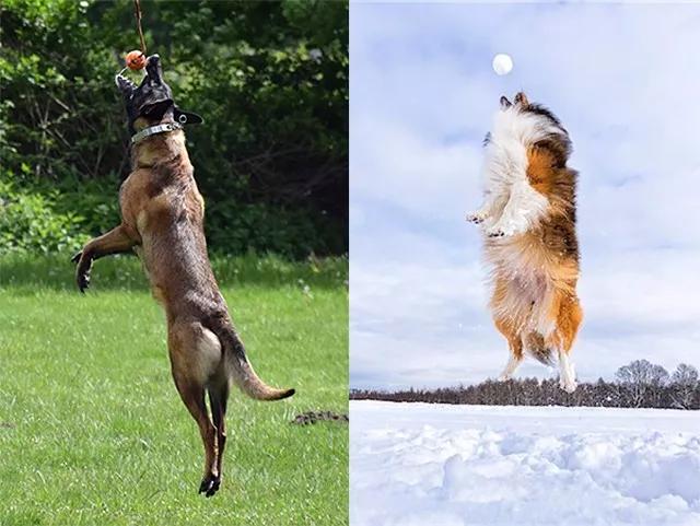 與跑步相比,這一題材相對簡單,只需要狗主人/助手配合,發出讓狗狗跳起的指令就行——拿著玩具,樹枝,食物都可以。