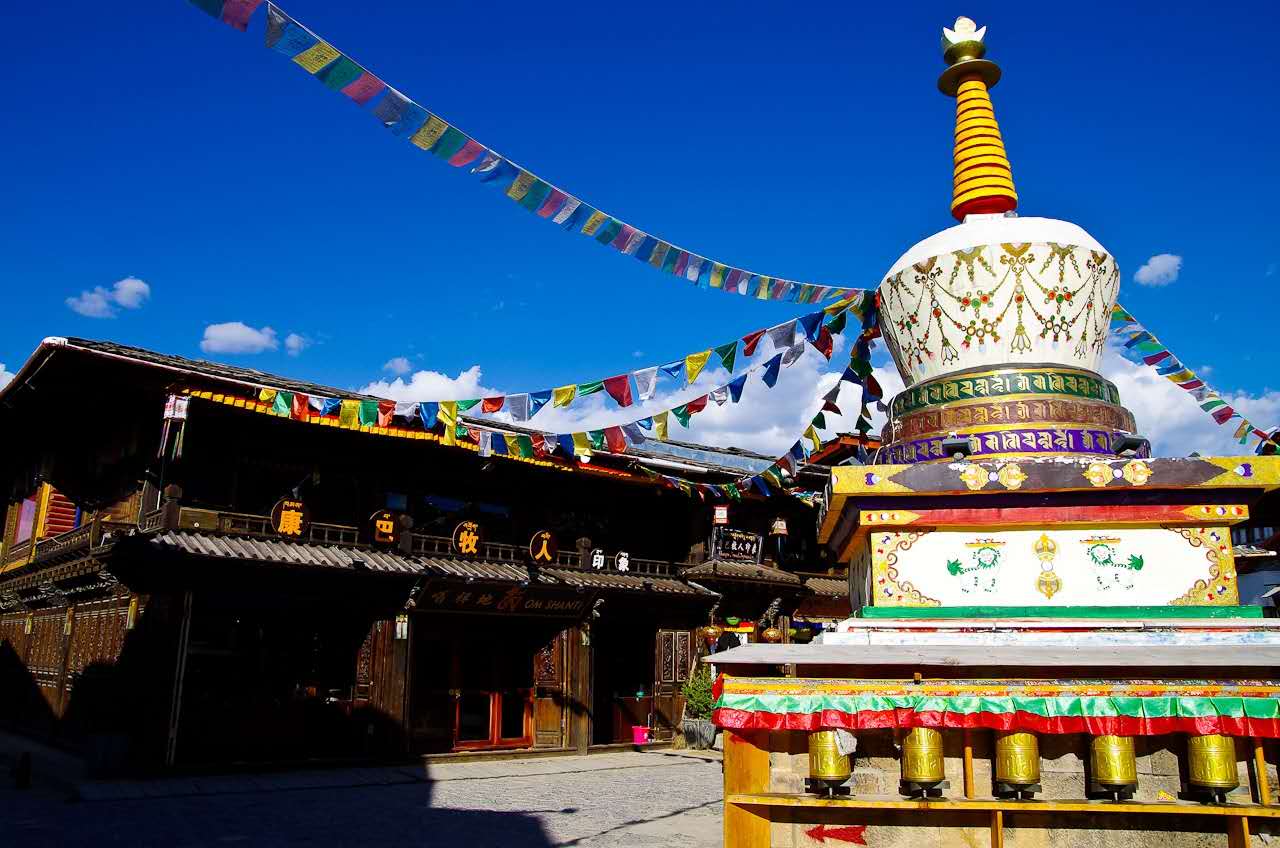 隨后乘車(chē)前往月光古城——【獨(dú)克宗古城】(游覽時(shí)間約50分鐘),前往龜山公園,轉(zhuǎn)世界上最大的轉(zhuǎn)金桶,為愛(ài)你的人和你愛(ài)的人祈福,游覽結(jié)束后乘車(chē)前往贈(zèng)送土司家宴,觀看藏族最有民族特色的歌舞表演;入住酒店休息。