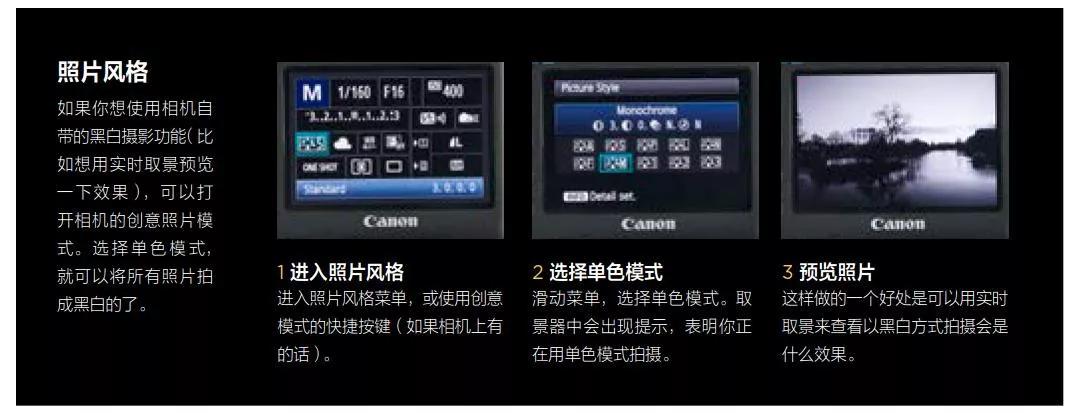 相機(jī)調(diào)成黑白模式步驟:相機(jī)的菜單頁面找到“照片風(fēng)格”,點(diǎn)擊進(jìn)去找到“單色”這個(gè)選項(xiàng)就可以了。(如下圖中黃色框標(biāo)記)