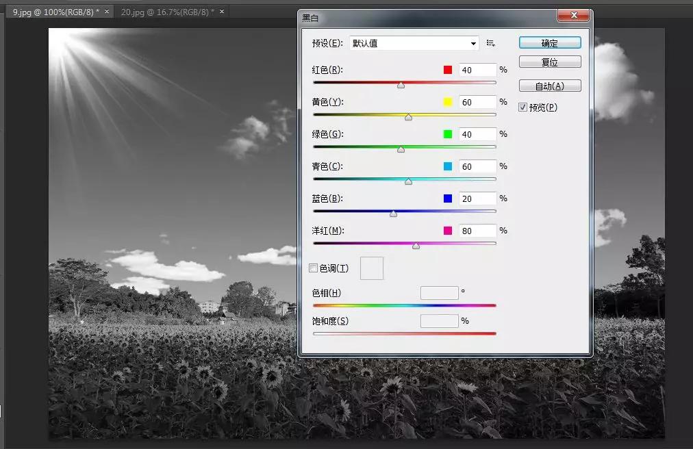 圖片導(dǎo)入進(jìn)來之后,點(diǎn)擊左上角“圖像”——調(diào)整——黑白。之后還可以對各色調(diào)值、色相、飽和度進(jìn)行調(diào)整,直到調(diào)整到自己想要的效果后再點(diǎn)擊確定保存即可。