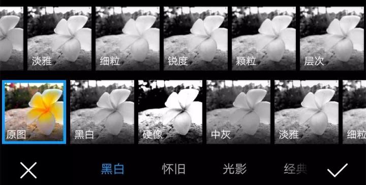 不會使用Photoshop也沒關(guān)系,手機(jī)自帶的美顏相機(jī)也有這項(xiàng)功能,找到“濾鏡”——“黑白”即可。